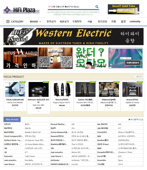 홈페이지(오디오의 시작 - 하이파이플라자 - 대한민국 최대 매물)에 접속하시면 전자상가, 세운상가, 국제전자, 서울, 경기/인천, 지방에 위치한 오디오 판매점의 제품들을 확인할 수 있습니다.