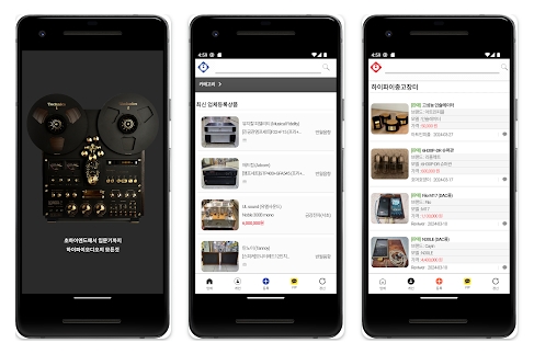 HiFi Plaza는 모바일 어플리케이션으로도 이용하실 수 있고, 구글의 플레이스토어와 애플의 앱스토어를 모두 지원합니다. 최근 트렌드에 맞춘 깔끔하고 멋진 디자인의 앱은 아니지만, 기존 PC화면과의 호환성을 위하여 노력했다고 하네요. 앱에서도 대한민국 오디오샵의 매물들을 검색할 수 있으며, 개인 오디오장터를 통한 직거래도 가능합니다.