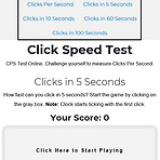 제한된 시간동안 얼마나 빠르게 그리고 많이 마우스 클릭을 할 수 있는지 테스트 할 수 있는 사이트가 있습니다. 일명 마우스 광클 테스트를 할 수 있는 곳인데요, 인터넷에서 찾아보시면 여러군데가 나옵니다. 그중에서 Click Speed Test 라는 사이트를 활용해보았으며, 접속하는 방법은 아래와 같습니다. 먼저 구글 검색창을 활용하여 위의 그림과 같이 키워드를 잡고 검색합니다. 그러면 맨 상단에 링크가 뜰겁니다. 물론 검색순위는 시간이 지남에 따라서 달라질수도 있습니다. 다른 사이트를 활용해도 어차피 비슷한 기능을 제공하기때문에 크게 상관은 없을 것 같네요. 페이지에 접속하시면 메인화면에서 자신의 클릭 속도를 테스트 해보라는 문구를 볼 수 있습니다. 시간제한을 설정할 수 있는데요 예를들면 5초, 10초,..